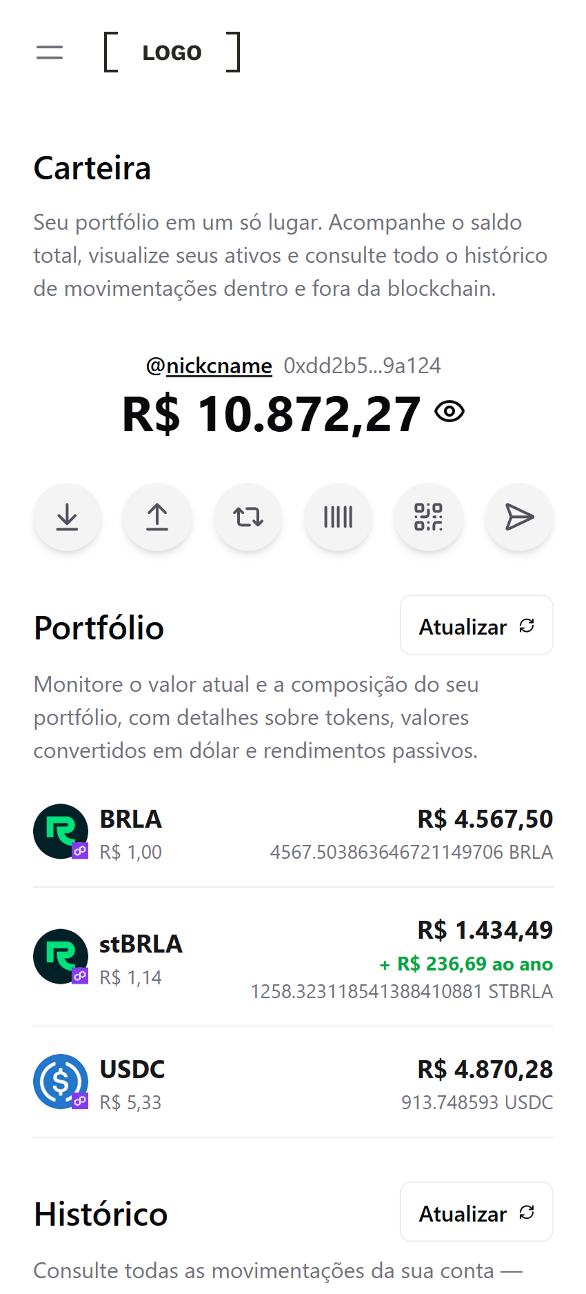Compre, venda e faça swap entre redes. Invista em lending, stake, RWAs e pools de liquidez — tudo a partir de uma interface simples e integrada.